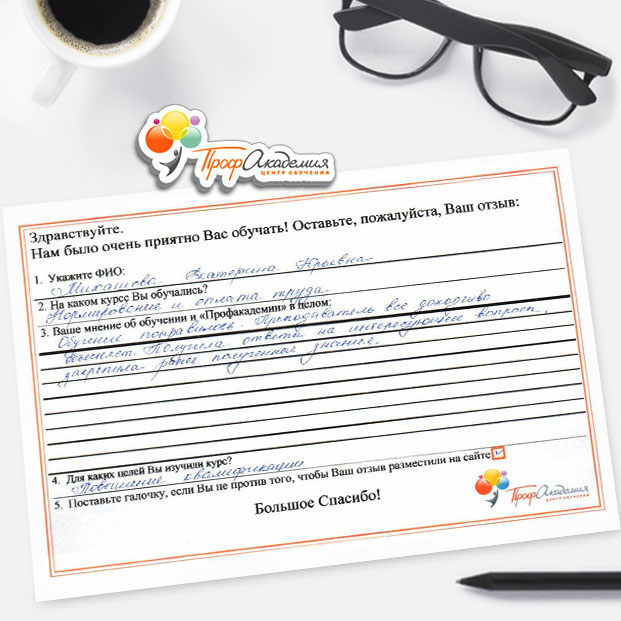 Обучение в "Профакадемии" позволило повысить уровень знаний и профессионализма. Выражаю благодарность преподавателю за его работу, проведенную с нами, и за знания.