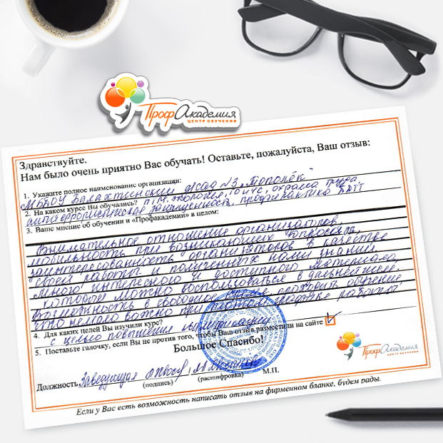 Для прохождения доп. проф. образ. для руководителя обращаемся в ПрофАкадемию почти 10 лет. Хотим отметить высокий профессионализм сотрудников, доброжелательность и надежность. Команда работает качественно, без задержек и накладок. Спасибо за ваш труд! Успехов и процветания!